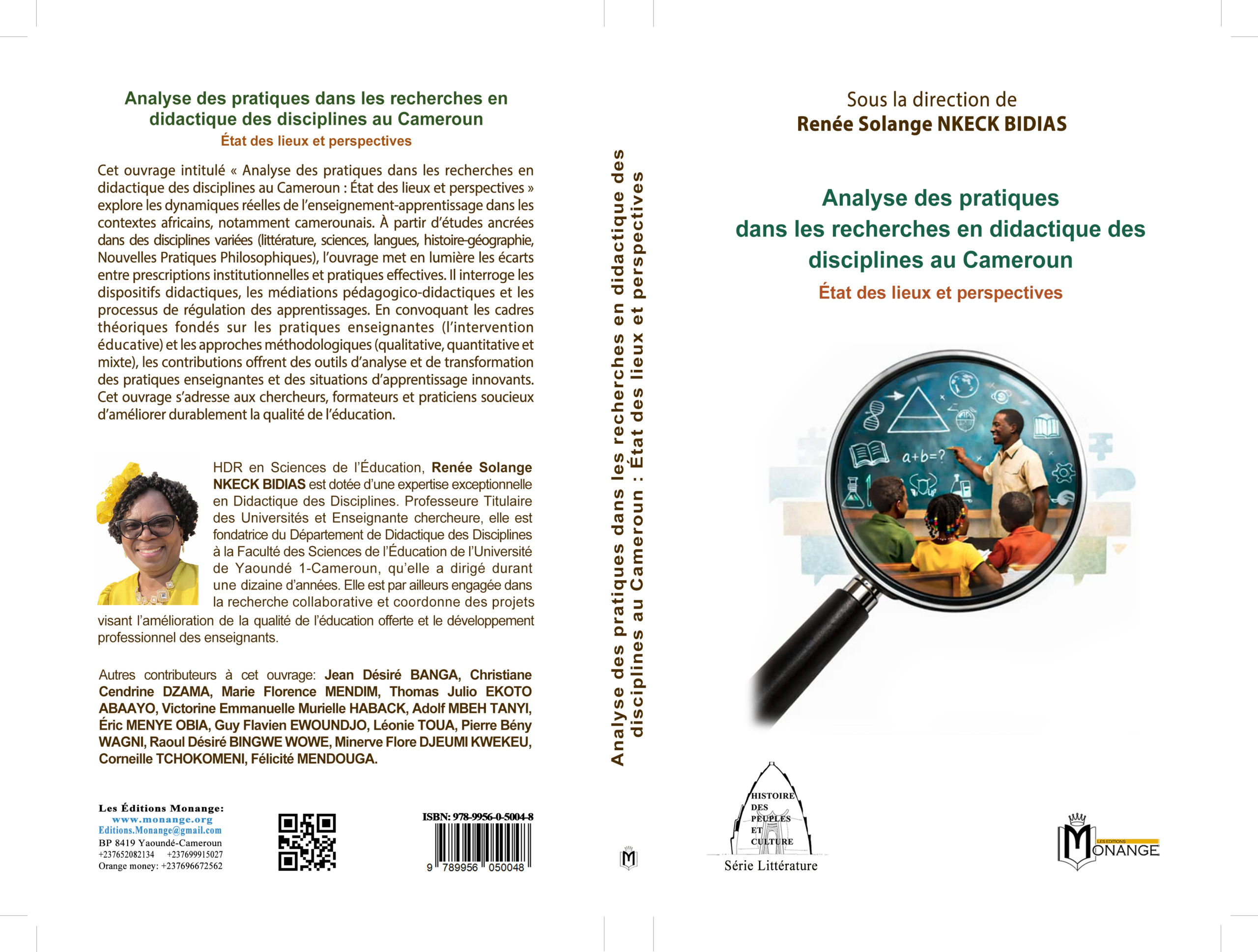 Renée Solange NKECK BIDIAS, Analyse des pratiques dans les recherches en didactique des disciplines au Cameroun : État des lieux et perspectives, Yaoundé, Monange, 2026, 270 pages.