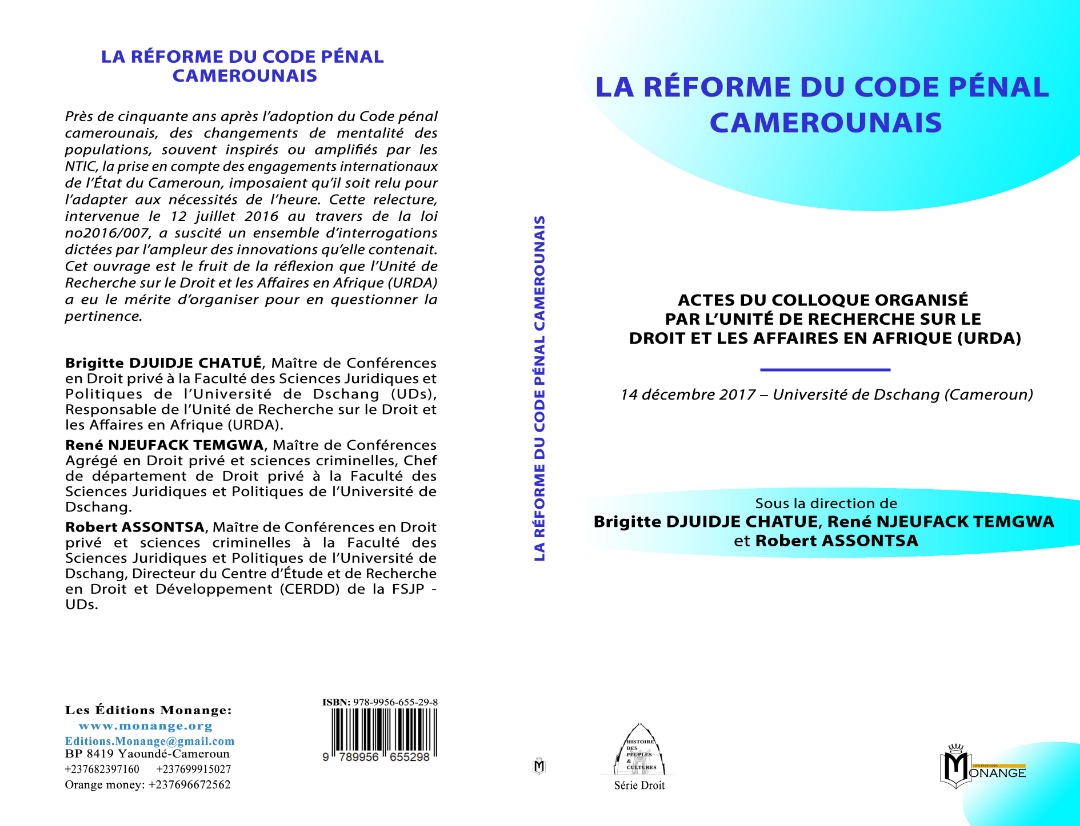 Brigitte Chatué, René Njeufack Temgwa et Robert Assotsa, La réforme du code pénal camerounais, Yaoundé, Monange, 2020, 350 pages