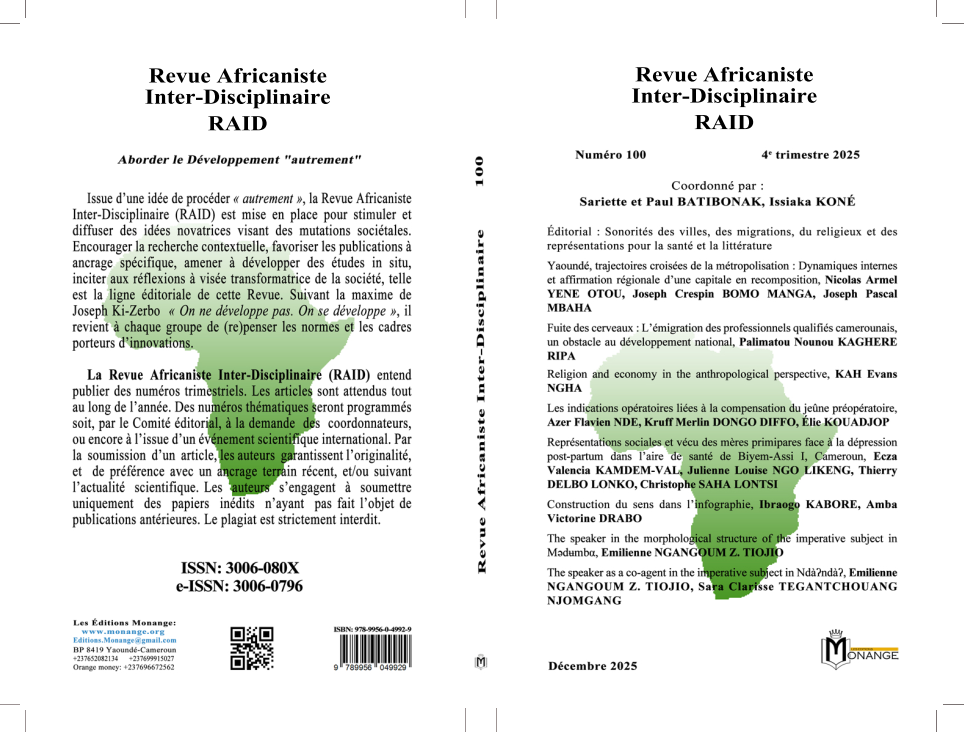 Titre : Revue Africaniste Inter-Disciplinaire – RAID – Numéro 100