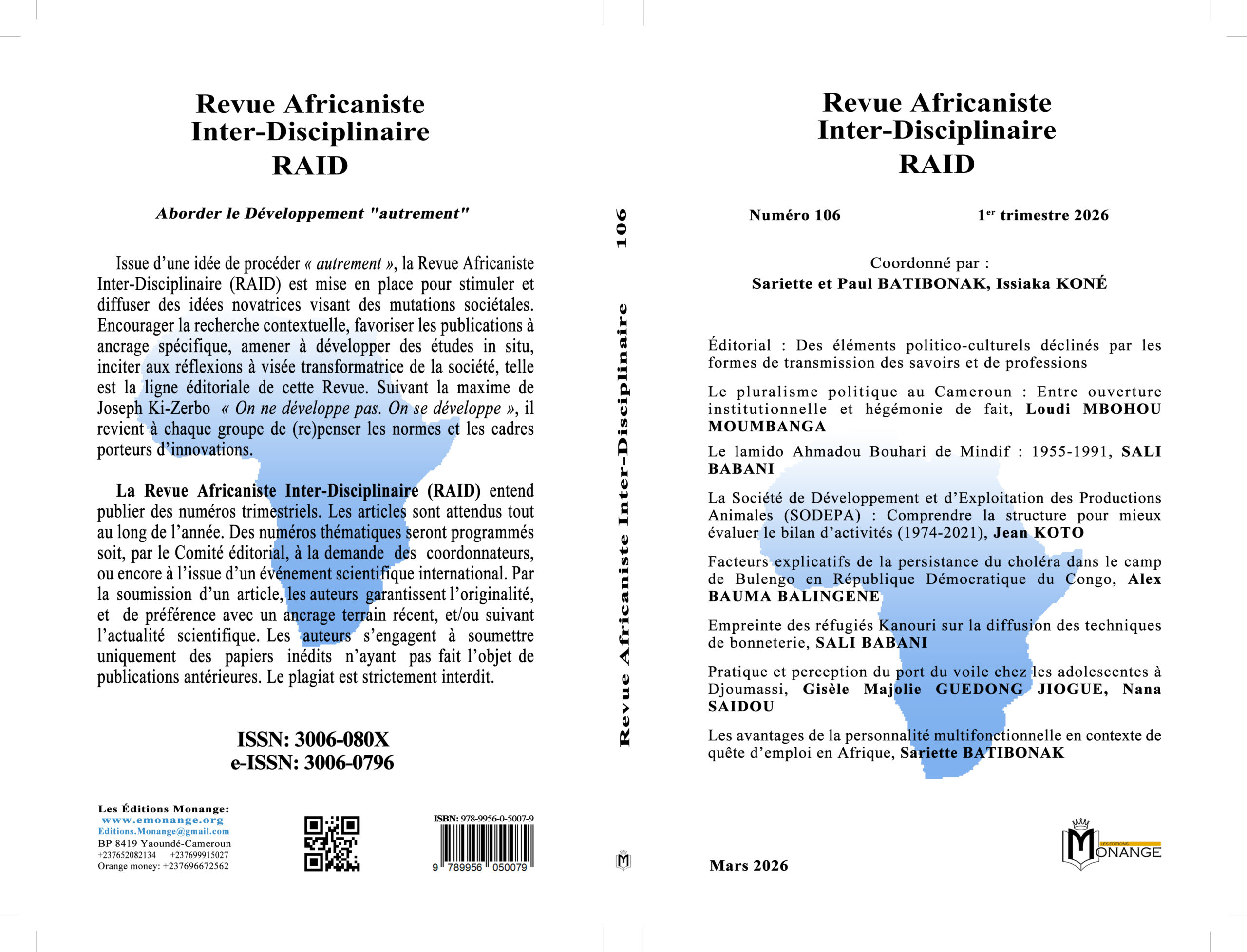 Titre : Revue Africaniste Inter-Disciplinaire – RAID – Numéro 106