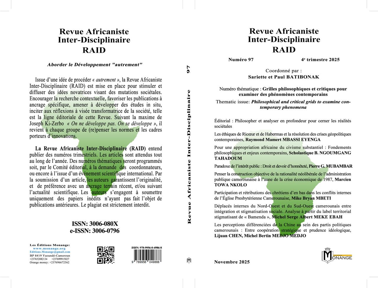 Titre : Revue Africaniste Inter-Disciplinaire – RAID – Numéro 97